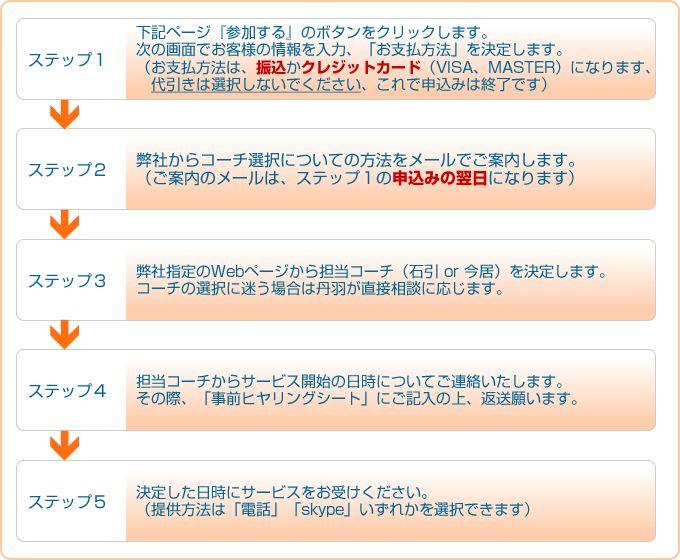このサービスのお申し込み〜開始までは次の5ステップです。